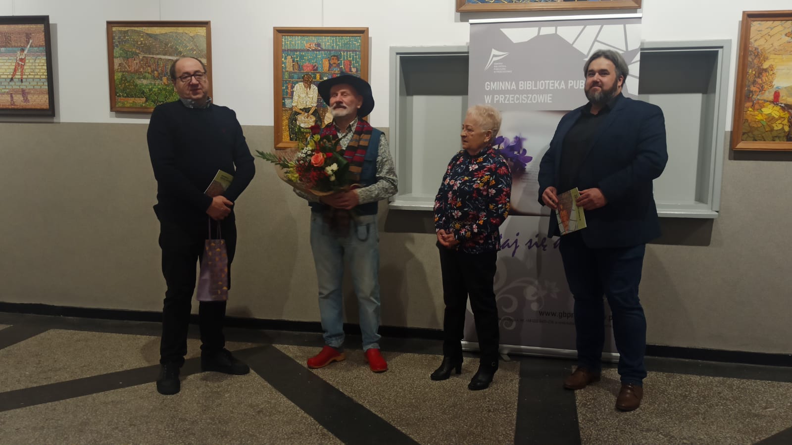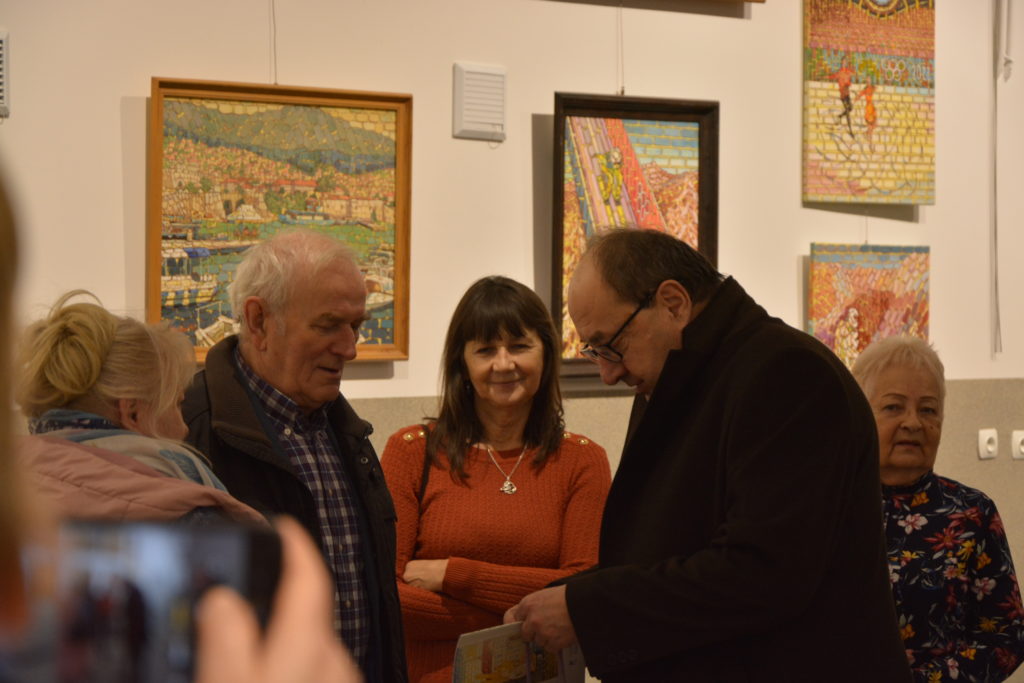 Wernisaż, który odbył się 2 lutego br. zgromadził liczną publiczność z małopolski i śląska. Wiele ciepłych słów powiedzieli o Mistrzu jego znajomi artyści oraz Wójt Gminy Przeciszów – Tomasz Kosowski. Bez wątpienia ta barwna postać zaprezentowała uczestnikom wernisażu prace artystyczne, które zaskakują swoją formą. Ich tematem są bliskie sercu malarza miejsca, a także ludzie, a niezwykłość obrazów podkreślają ich nasycone do granic kolory. Autor przygotował miłą niespodziankę dla uczestników wernisażu w postaci obrazów, które otrzymali szczęśliwcy wylosowani w loterii.