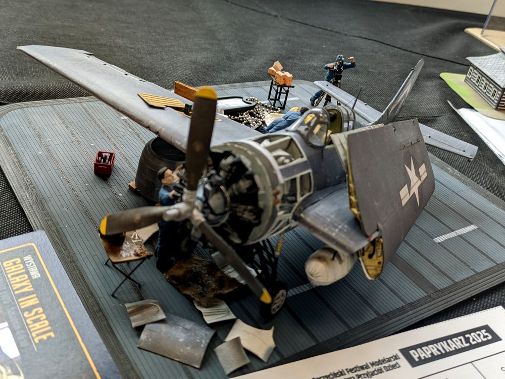 Od pojazdów wojskowych, przez figurki, po modele samolotów, statków i dioramy – każdy zwiedzający mógł znaleźć coś dla siebie. Ogromne wrażenie robiła nie tylko liczba modeli, ale przede wszystkim ich jakość, co było często podkreślane zarówno przez widzów, jak i jurorów. Organizatorzy zadbali o komfortowe warunki zarówno dla wystawców, jak i odwiedzających. Przemyślana organizacja przestrzeni, strefy wypoczynku i gastronomiczne oraz przyjazna atmosfera sprawiły, że czas spędzony na festiwalu upływał wyjątkowo przyjemnie. Frekwencja zaskoczyła nawet najbardziej doświadczonych organizatorów – przez trzy dni festiwal odwiedziła niewyobrażalna liczba miłośników modelarstwa. Do konkursowej rywalizacji stanęli modelarze z Polski oraz z zagranicy, co zapewniło bardzo wysoki poziom prezentowanych prac. Jury miało twardy orzech do zgryzienia – ocenić kunszt, technikę i pomysłowość tak wielu znakomitych modeli nie było łatwo. Festiwalowi towarzyszyły warsztaty modelarskie dla dzieci i młodzieży, które cieszyły się ogromnym zainteresowaniem i były doskonałą okazją do zdobycia nowych umiejętności i inspiracji. Dla tych, którzy szukali nowości i uzupełnień do swoich kolekcji, przygotowano giełdy modelarskie z bogatą ofertą modeli, akcesoriów i literatury fachowej. Nie zabrakło też aspektów towarzyskich – Szczeciński Paprykarz Modelarski jak zawsze zadbał o ciepłą atmosferę i pyszne jedzenie, które umilało kuluarowe rozmowy i integrację modelarskiego środowiska. Wśród nagrodzonych znaleźli się zarówno młodzi, jak i doświadczeni modelarze. Każdy młodzik i junior otrzymał pamiątkowy dyplom za udział w konkursie, a na podium stanęli modelarze z przeciszowskiego „Orła”: