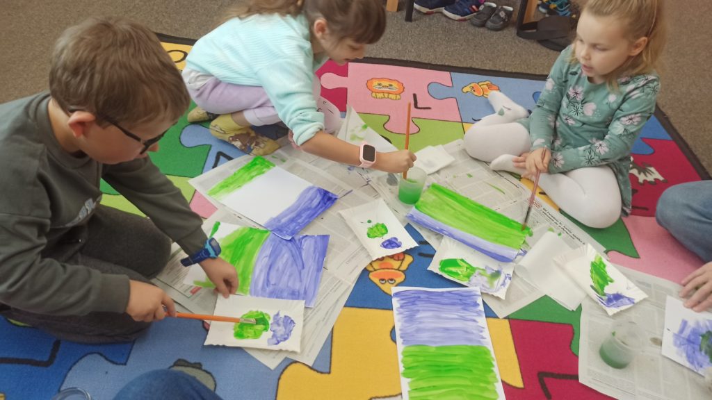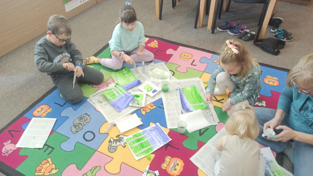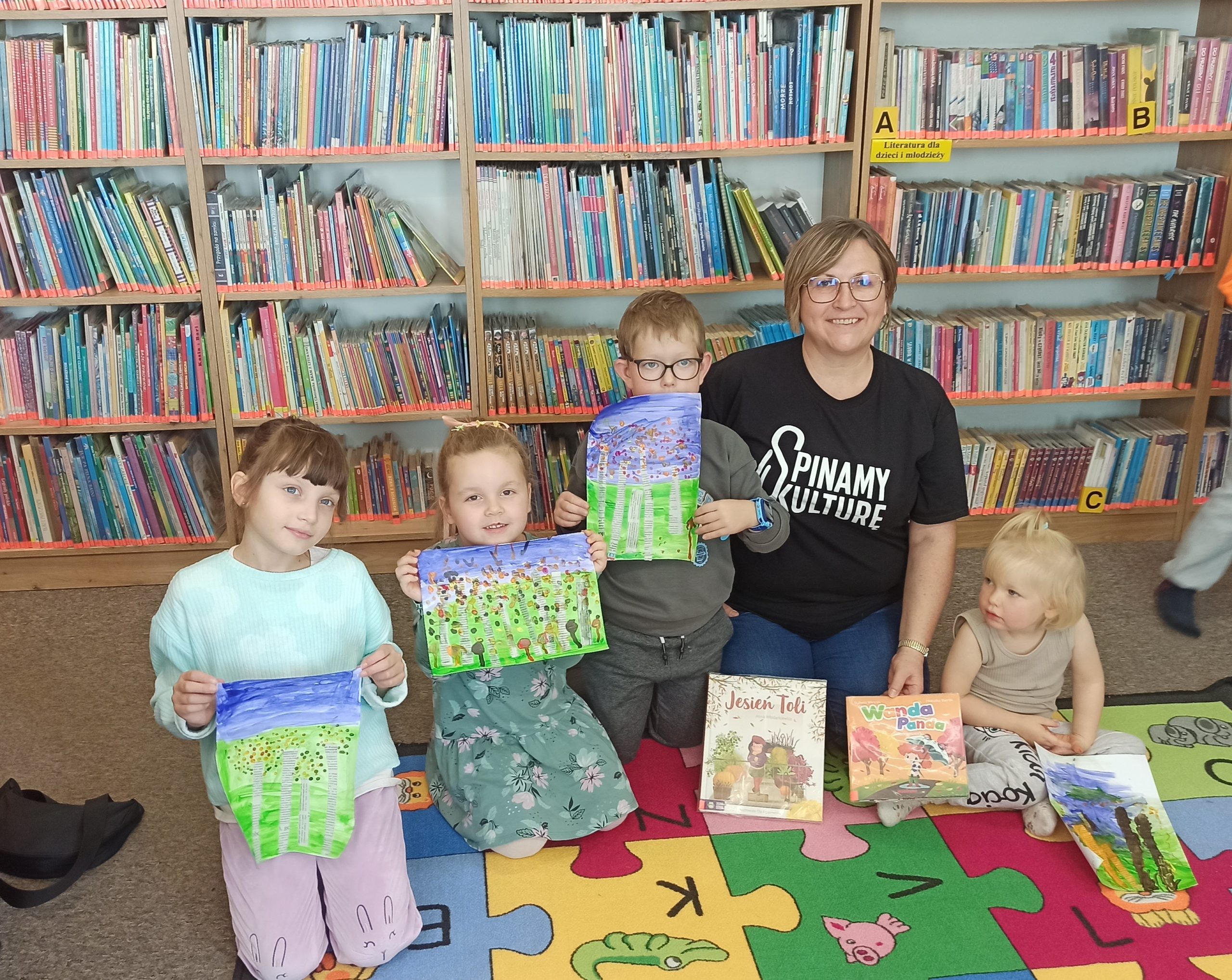 W sobotnie przedpołudnie, 4 października, młodsze dzieci spotkały się w bibliotece w Przeciszowie, aby posłuchać czytanej książki i wykonać tematyczną pracę plastyczną.