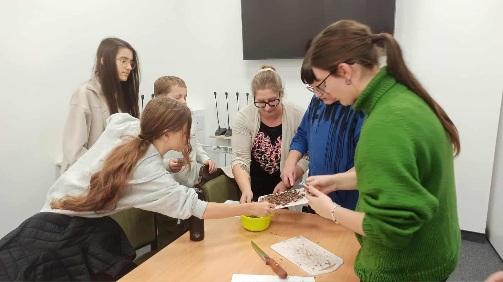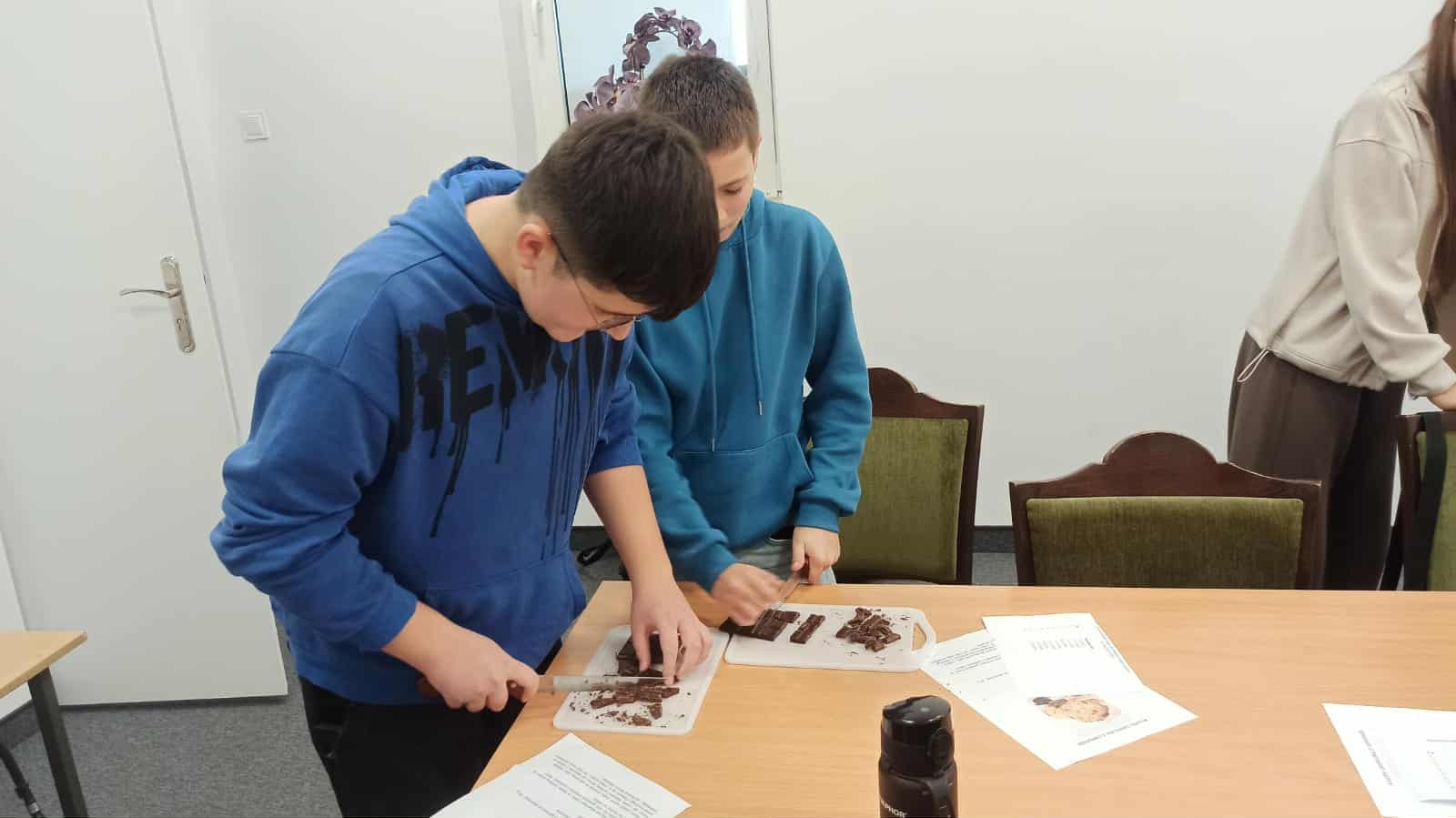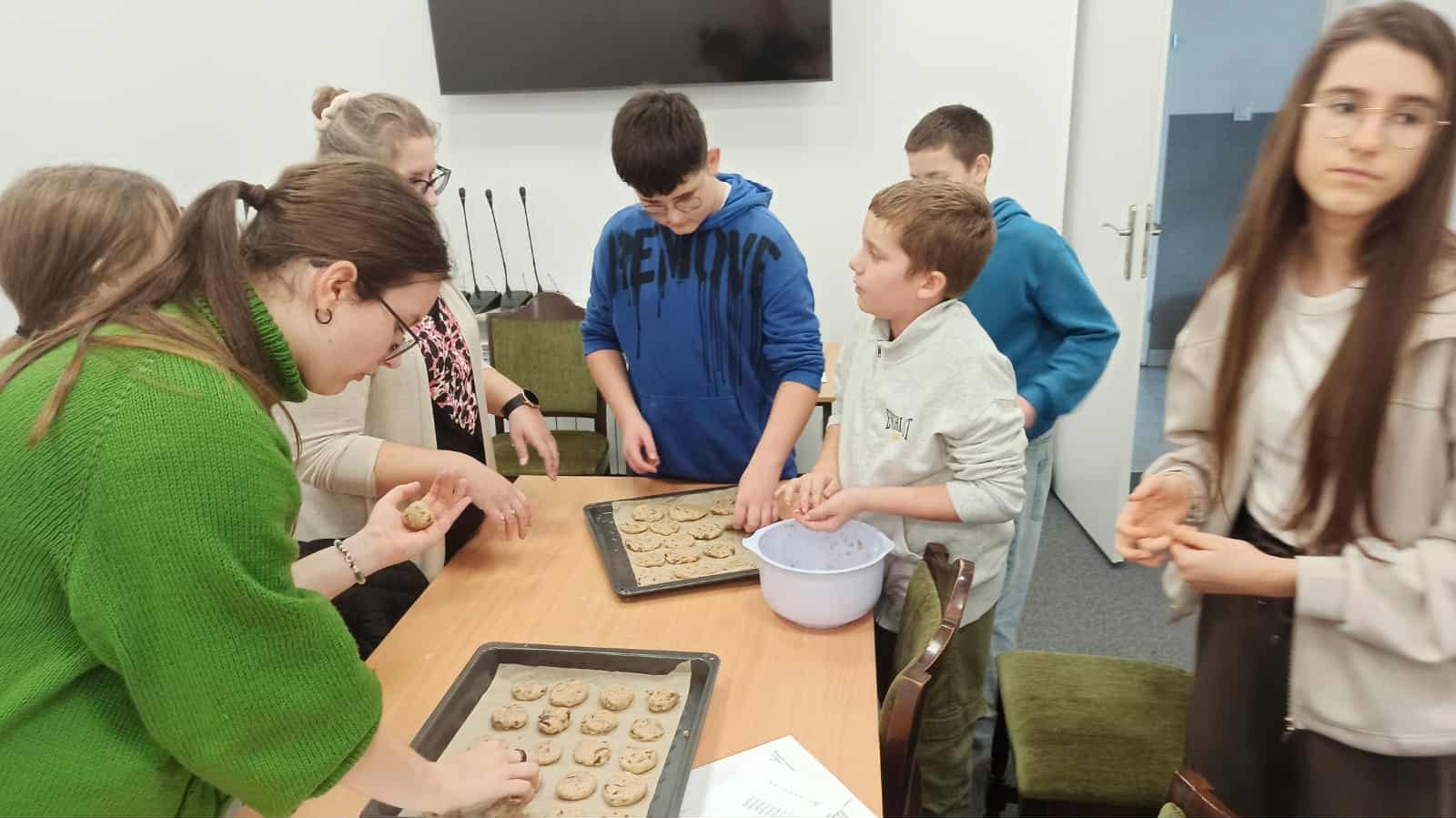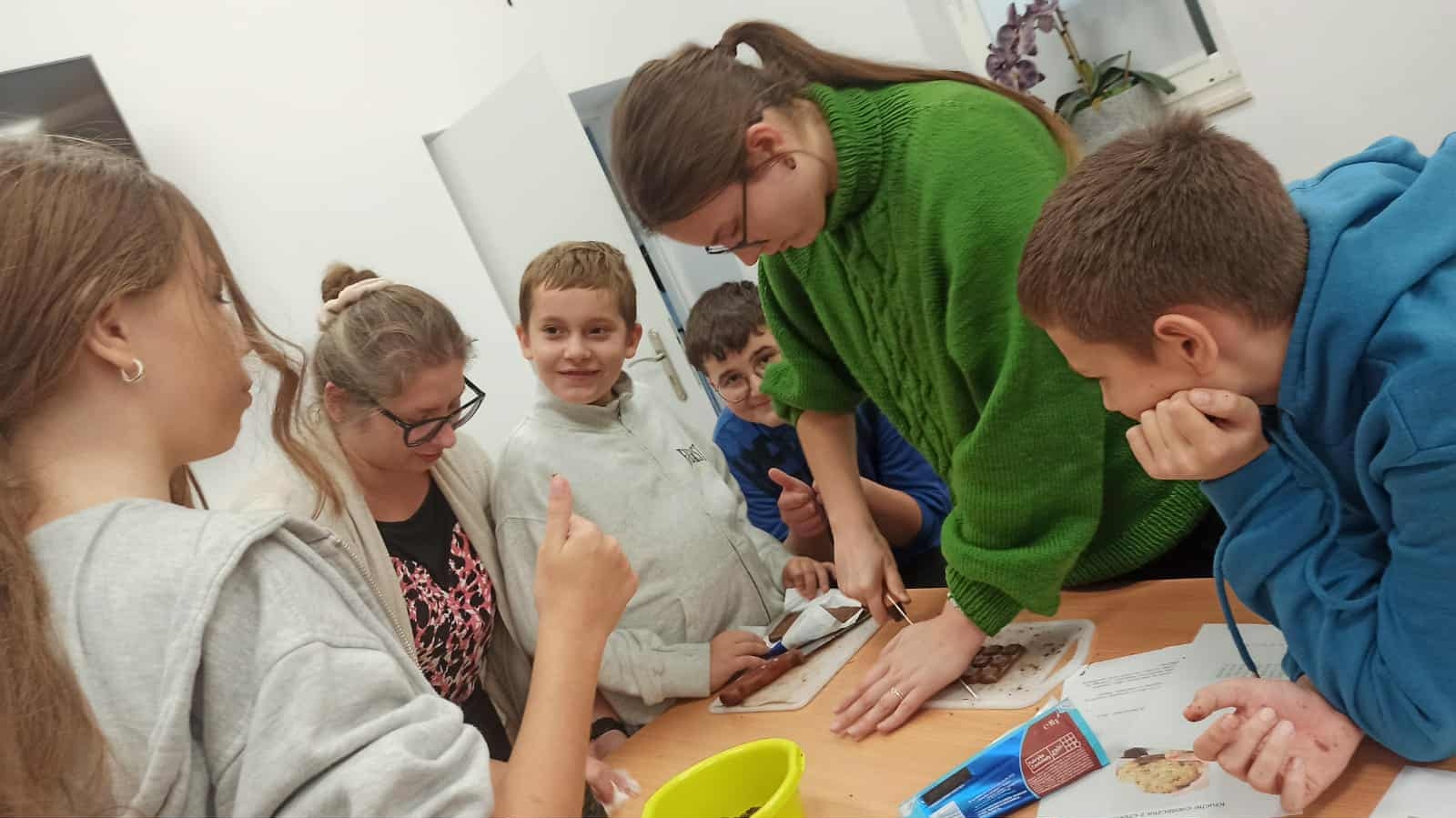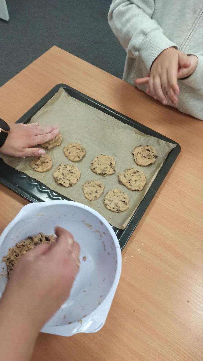 W październiku po letniej przerwie wróciliśmy do kulinarnych przygód z młodymi kucharzami. Amerykańskie ciasteczka z czekoladą były motywem przewodnim tych zajęć. Jak zawsze każdy miał swoje zadanie i wywiązał się z niego wzorowo, dlatego też tak szybko z blaszki zniknęły świeżo upieczone łakocie. Podczas pieczenia w całym budynku roznosił się piękny zapach czekolady, który czuć było jeszcze następnego dnia.