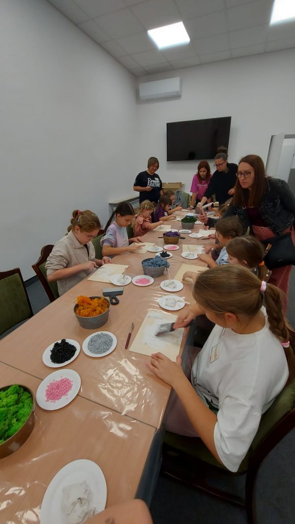 Na uczestników czekały sensoryczne obrazy, magiczna szkatułka, „Zgaduj-zgadula z książką”, a także seans filmowy. Wspólnie spędziliśmy prawie pięć godzin pełnych dobrej zabawy, kreatywności i radości z obcowania z książką. Nie zabrakło również pysznego poczęstunku. Zwieńczeniem spotkania był seans filmu „Biuro detektywistyczne Lassiego i Mai” – oczywiście z popcornem!