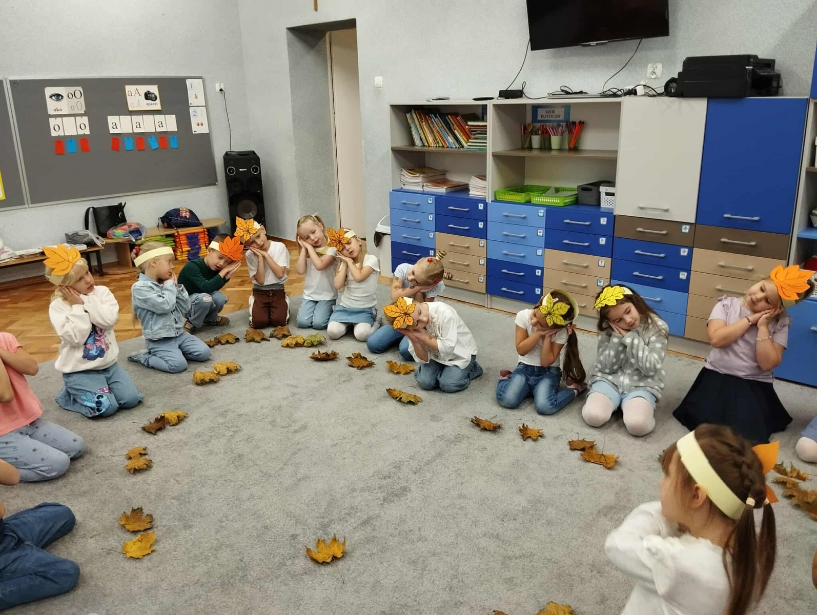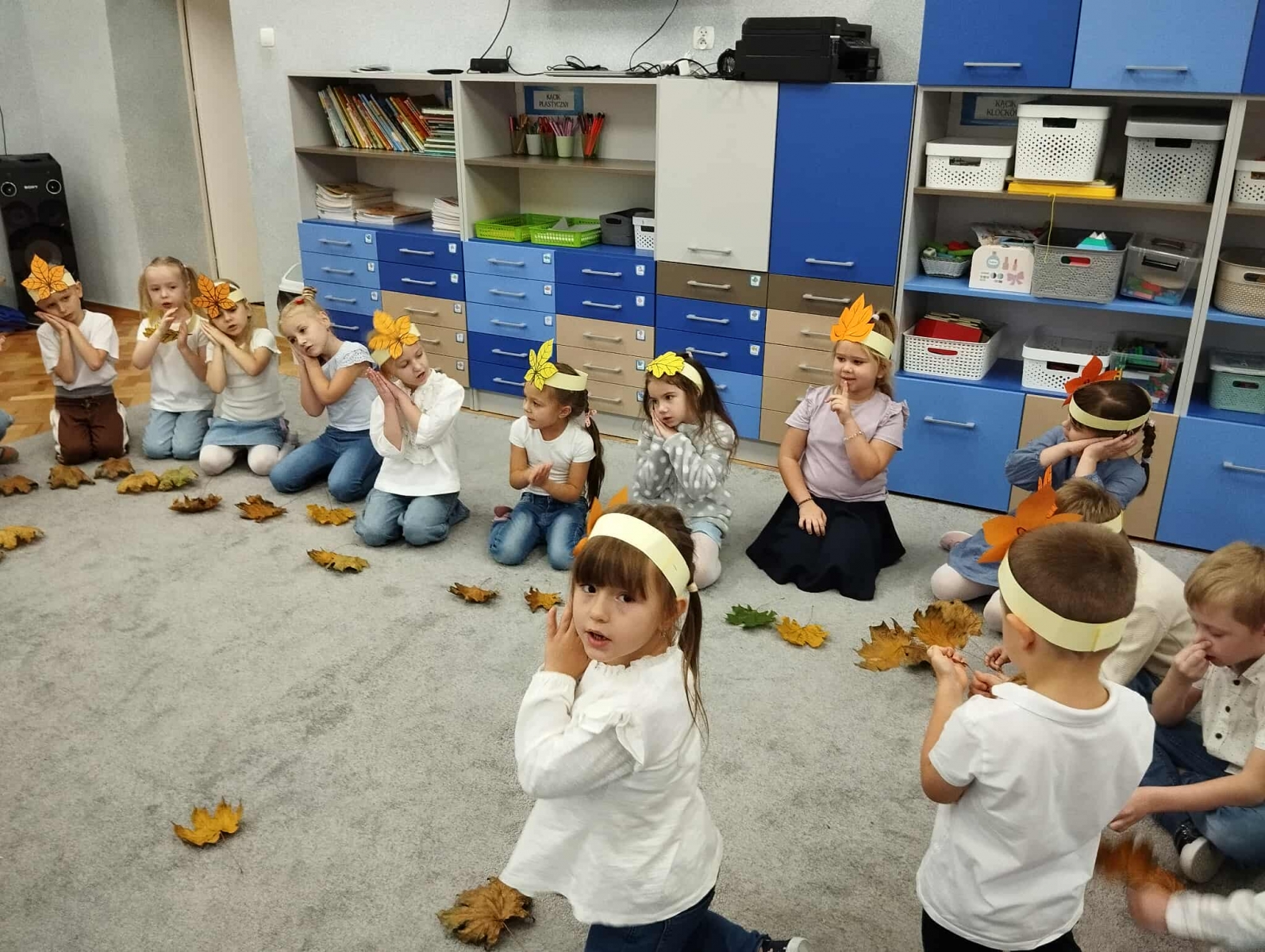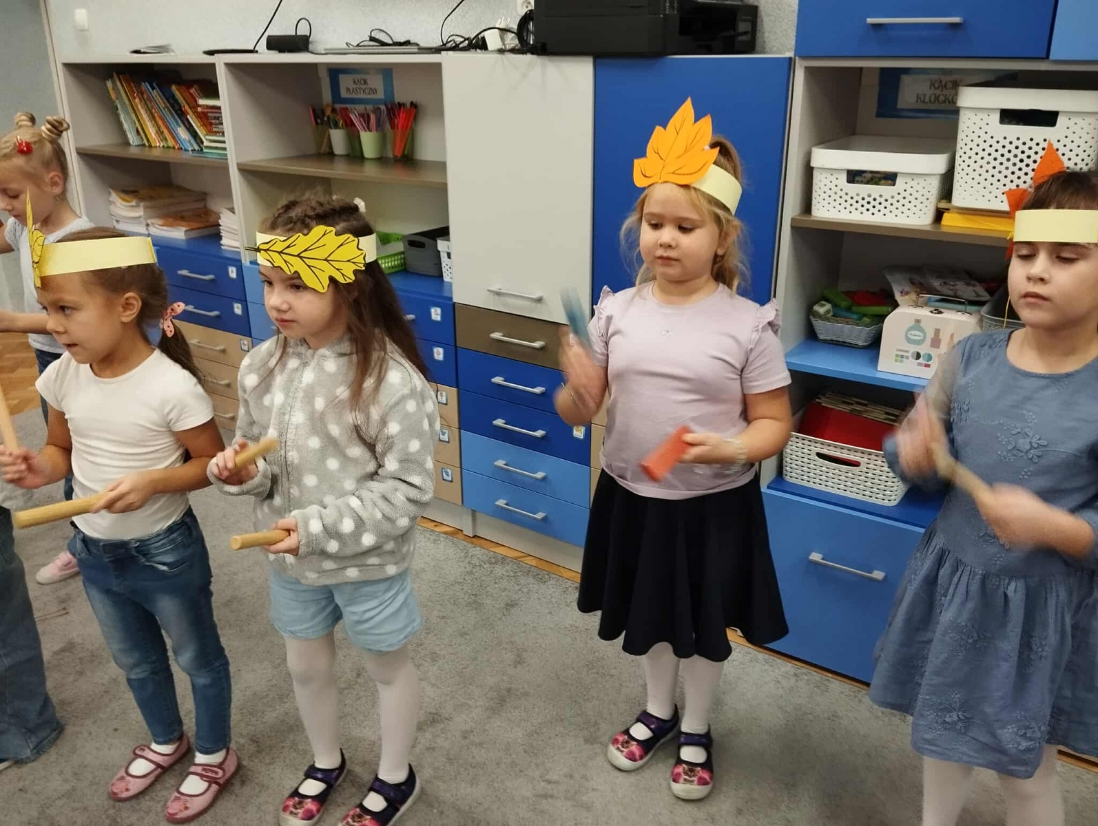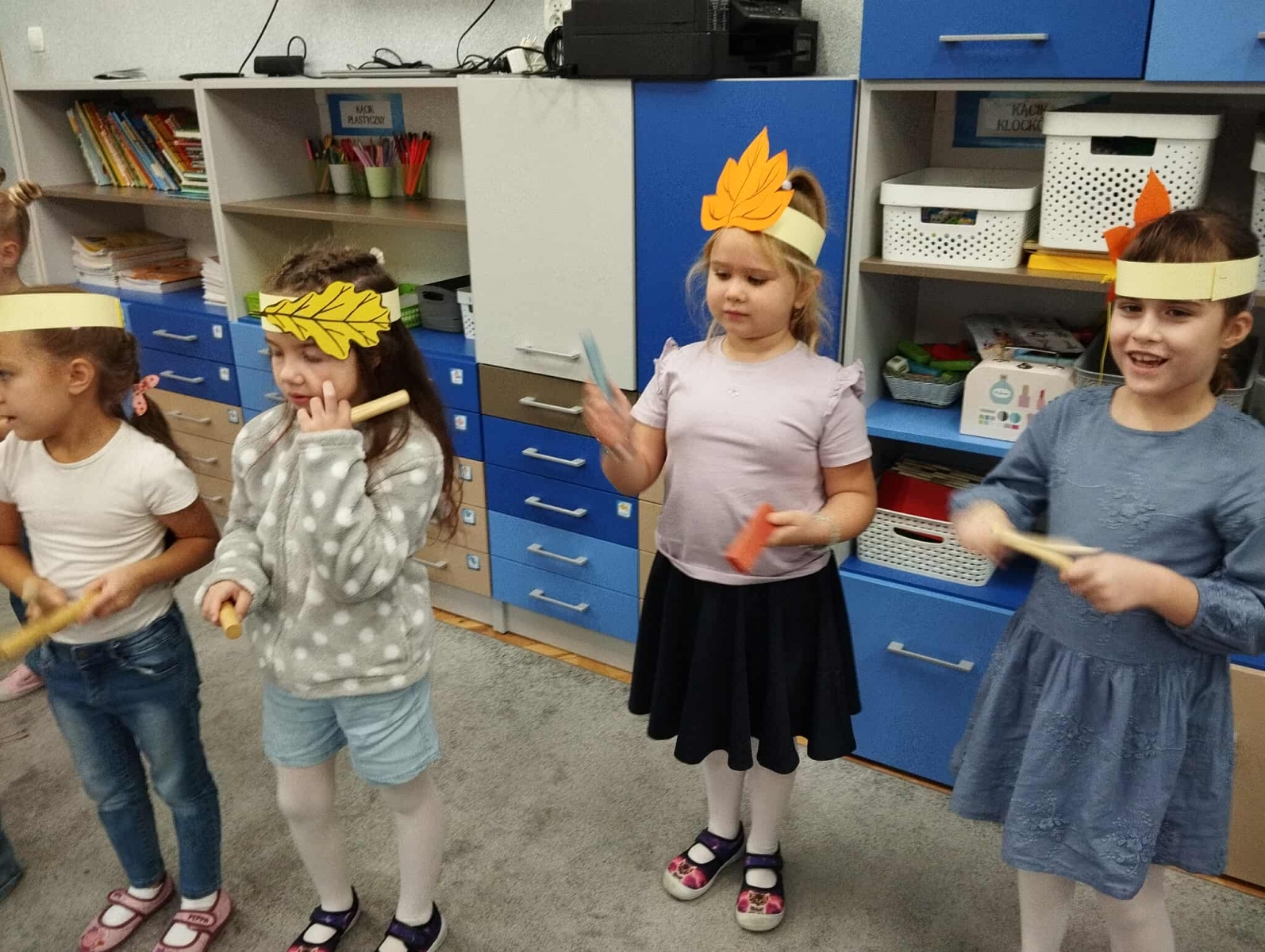 Jesienną nutką rozpoczęły się zajęcia umuzykalniające, które po przerwie wakacyjnej ponownie poprowadziła Pani Halina Czerwiec. W przedszkolu nr 2 w Przeciszowie zajęcia rozpoczęły się opowiadaniem o jesieni: z czym dzieciom kojarzy się jesień, kolory jesieni. „Kolorowe liście” to pierwsza zabawa muzyczna, która zachwyciła dzieci i wprowadziła je w jesienny nastrój, trzymając w rękach jesienne liście dzieci zgodnie z tekstem piosenki naśladowały spadające liście z drzew. Następną zabawą była piosenka „Pada deszczyk” podczas której dzieci mogły naśladować dźwięki kropelek deszczu, wystukując rytm na instrumentach rytmicznych. Najbardziej dzieciom podobała się zabawa trzecia, czyli „Idą, idą jeże”, przyniosła ona im dużo radości gdyż oprócz wystukiwania rytmów, mogły też naśladować zabawne jeżyki, które szykują się do zimowego snu.