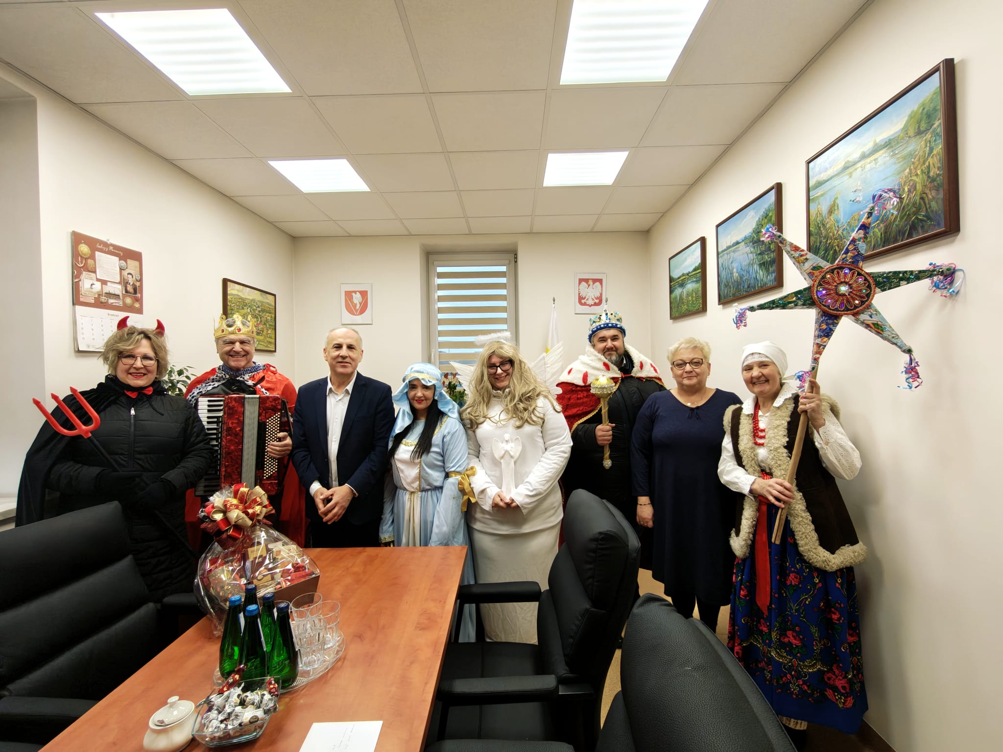 Okres świąteczny sprzyja wspólnym spotkaniom, w związku z tym pracownicy oraz przyjaciele Gminnej Biblioteki Publicznej w Przeciszowie postanowili rozpocząć okres przedświąteczny wspólnym kolędowanie. W dniu dzisiejszym wybraliśmy się do Urzędu Gminy, aby wprowadzić w świąteczny nastrój włodarza Gminy – Wójta Tomasza Kosowskiego oraz jego współpracowników. A co udało się nam zrobić? Zobaczcie sami…
