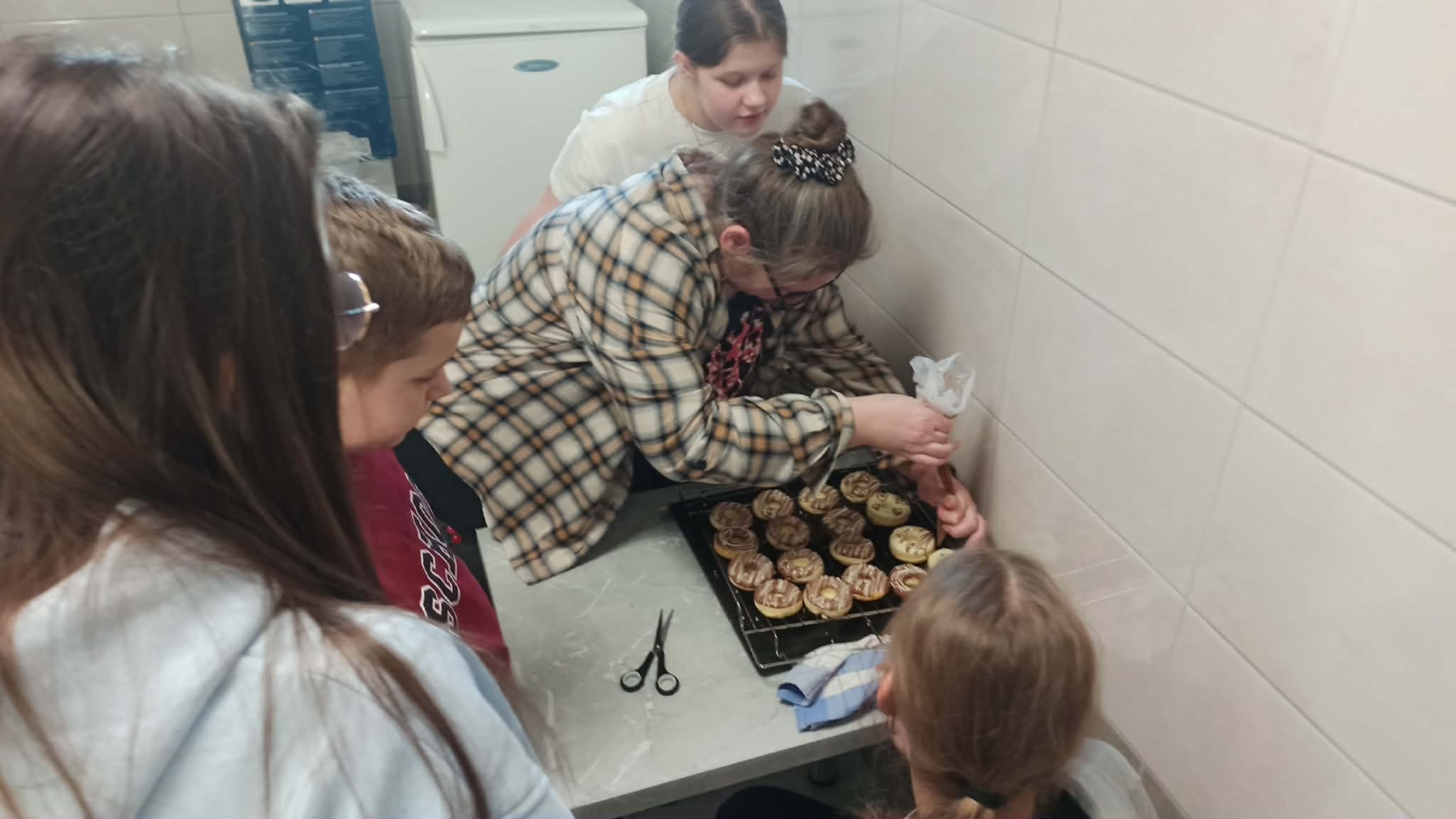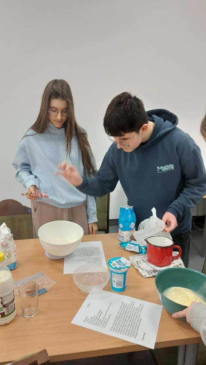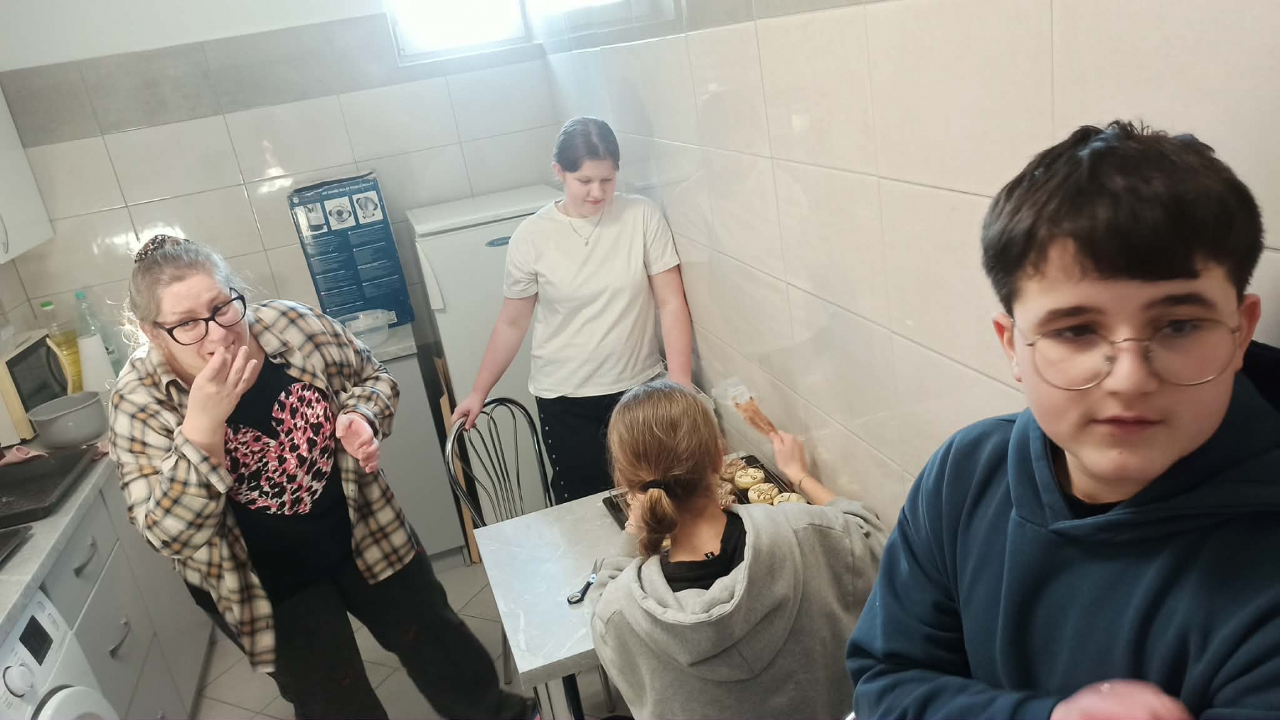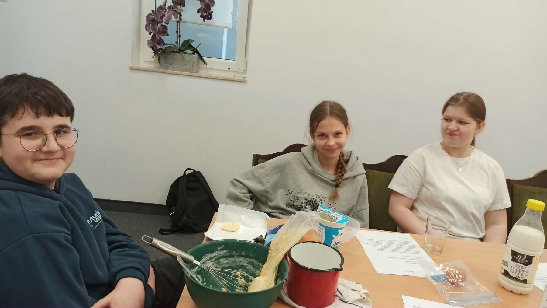Podczas naszych ostatnich zajęć kulinarnych dzieci zamieniły się w prawdziwych mistrzów cukiernictwa! Mimo, że nie był to tłusty czwartek to i tak królowały pączki, a konkretniej donuty. Przepis szybki i prosty, ale nie ujmowało to ekscytacji z przygotowań. Gdy nasze wypieki były gotowe i troszkę ostudziły się po wyjęciu z pieca, nastąpił czas dekoracji, roztopioną w kąpieli wodnej czekoladą, bardzo profesjonalnie na pączkach pojawiły się słodkie esy i floresy, a po obowiązkowym wspólnym zdjęciu nastąpił czas próbowania, donuty zniknęły raz dwa więc nie ulega wątpliwości, że były pyszne.