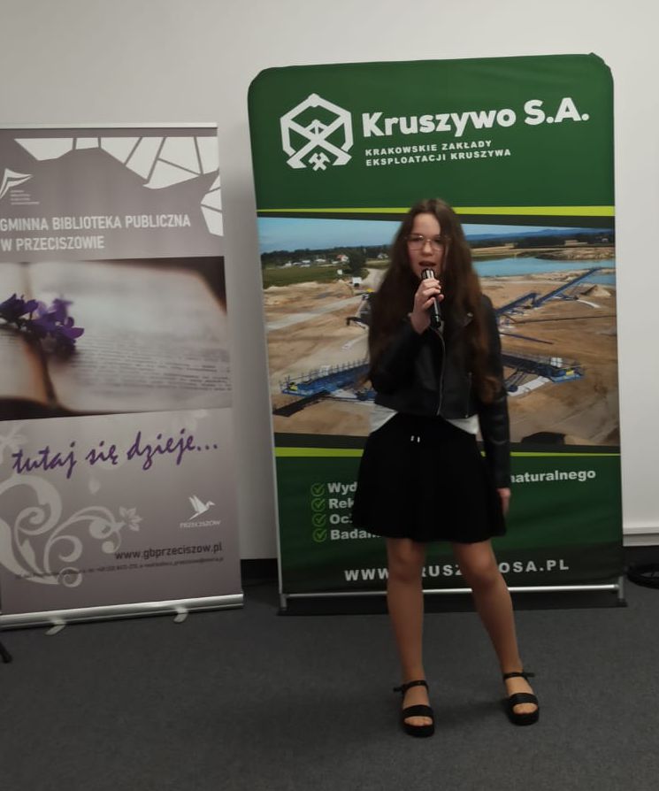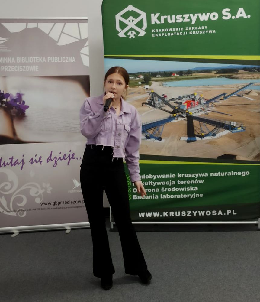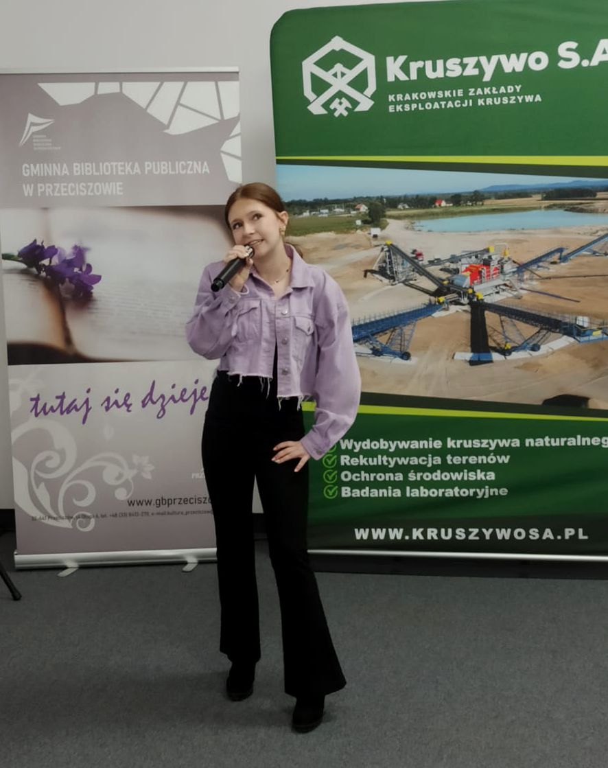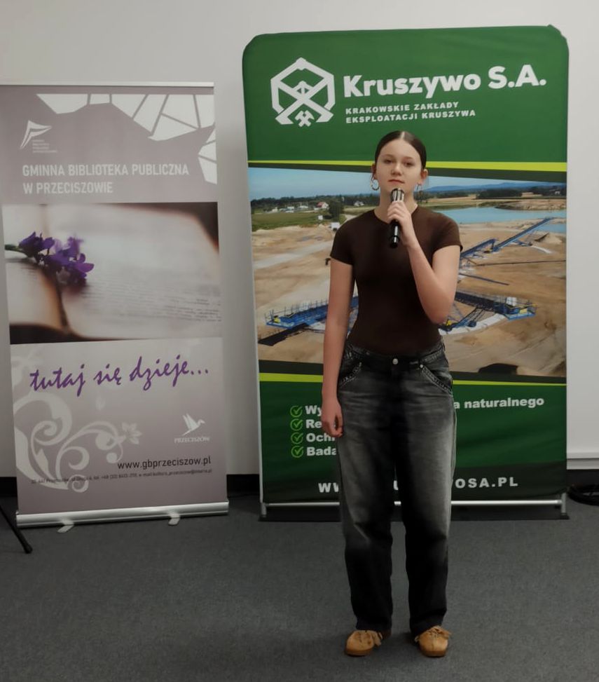 23 kwietnia w Domu Kultury w Przeciszowie odbyły się eliminacje (I etap) uczestników konkursu wokalnego „Diamenty Kruszywa”. To wydarzenie, cieszące się ogromną popularnością, jest inicjatywą firmy Kruszywo S.A., której celem jest promocja młodych talentów na terenie gmin współpracujących ze spółką. Dla Gminnej Biblioteki Publicznej w Przeciszowie organizacja wszystkich etapów konkursu to ogromny zaszczyt – zwłaszcza że instytucja ta podejmuje się tego zadania już po raz drugi!Tegoroczne eliminacje zgromadziły uczestników z terenu gminy Przeciszów, którzy zaprezentowali swoje umiejętności wokalne przed jury. Po wysłuchaniu wszystkich występów komisja konkursowa wyłoniła uczestników, którzy zakwalifikowali się do kolejnego etapu „Diamentów Kruszywa”. Kolejny etap odbędzie się 8 czerwca 2026 roku w Domu Kultury w Przeciszowie.