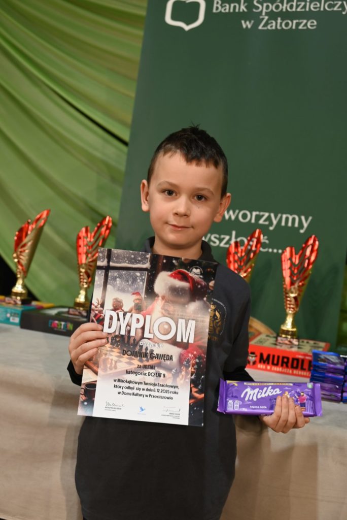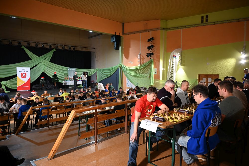 6 grudnia 2025 roku w Domu Kultury w Przeciszowie odbyła się kolejna edycja cieszącego się ogromnym uznaniem Mikołajkowego Turnieju Szachowego. Wydarzenie, które na stałe wpisało się w kalendarz lokalnych imprez sportowych, ponownie zgromadziło liczne grono miłośników królewskiej gry. Do rywalizacji stanęli zawodnicy z Krakowa, Oświęcimia, Grodziska, Bielan, Grojca, Podolsza, Przeciszowa, Gierałtowic, Poręby Wielkiej, Chrzanowa, Żarek oraz Polanki Wielkiej, tworząc imponującą, bo aż 71-osobową obsadę. Turniej został rozegrany w siedmiu rundach, a tempo gry wynosiło 15 minut na zawodnika. Uczestnicy rywalizowali w trzech kategoriach wiekowych: do 9 lat, do 16 lat oraz open. System rozgrywek oraz wysoki poziom sportowy sprawiły, że każda partia dostarczała dużych emocji zarówno graczom, jak i kibicom.
